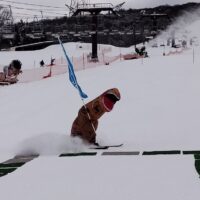 斜面で止まれるようになるとプルークボーゲンの練習をします。